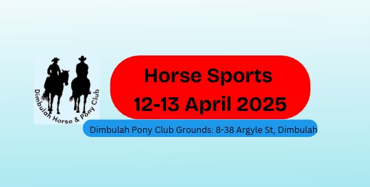 Dimbulah Horse Sports Trophy Weekend Saturday - 10am Stake Race Straight Barrels Keyhole American Flag Double Figure 8 Eggtimer Fancy Dress Barrel Race Sunday - 8am All In One Combination Race Walking Race Trail Ride & swim at the River. TROPHY PRESENTATION NIGHT - from 5.30pm. Come and support our riders and their achievements over the year.  Dinner - $12 plate / $6 1/2 plate. Live entertainment, heaps of games and fun for the kids, licensed Bar, Music, Food and good company. See our Facebook page for more details   NOMINATION COSTS Leds                 $ 8 7 & under          $15 8 - 10y              $15 11 - 13y              $15 14 - 17y             $15 18 - 39y            $30 40+ years          $30    Payment via bank transfer or at the Canteen on the day. Bank: Bendigo Account Name: Dimbulah Pony Club BSB: 633-000 Acc Number: 128-994-183